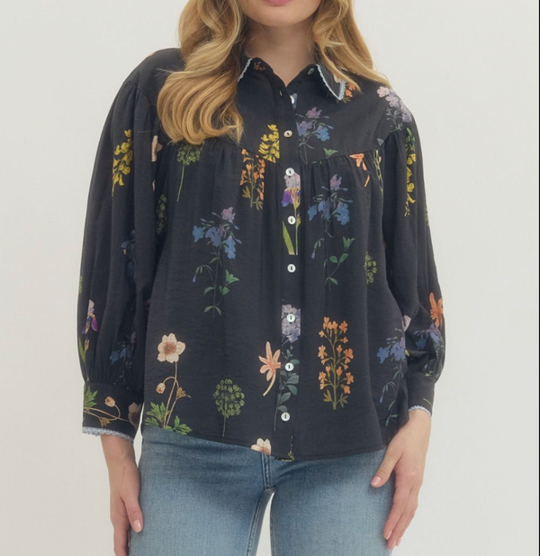Floral Front Button Ruffle Crop Top with Matching Maxi Skirt-Set