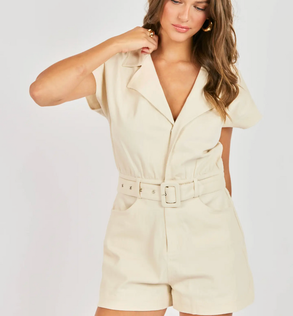 Clear Eyes Belted Romper:Cream