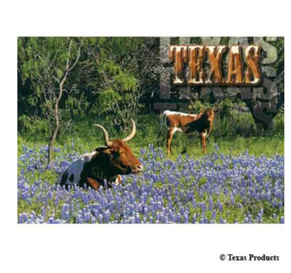 Longhorn Sitting in Blue Bonnets Texas Post Card