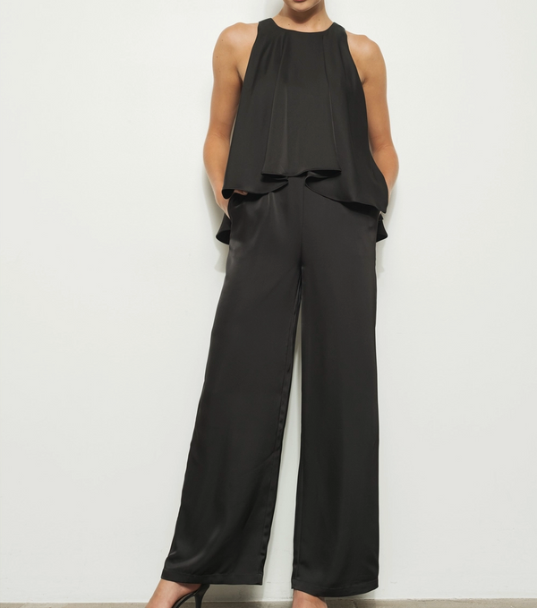 Satin Round Neck Sleeveless Jumpsuit-Black