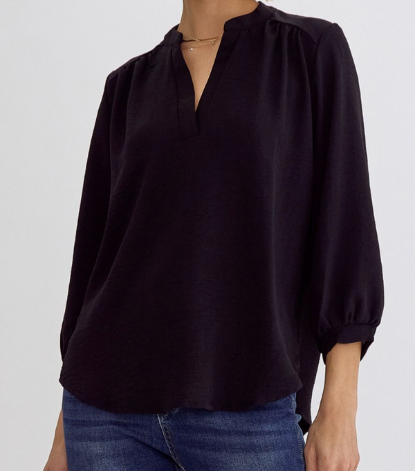 Solid 3/4 Sleeve V-Neck Top