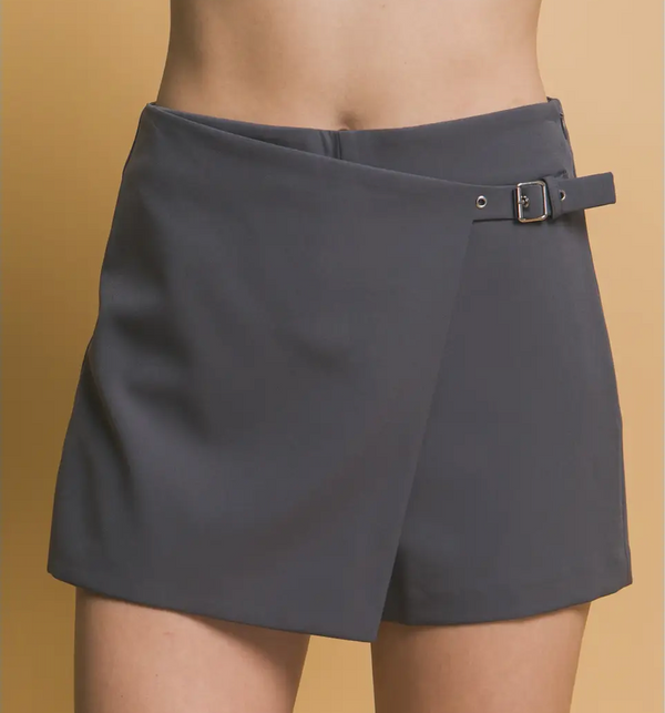 Solid Wrap Mini Shorts-Gray