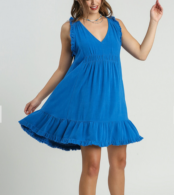 Umgee Sleeveless V-Neck Linen Dress Colbalt