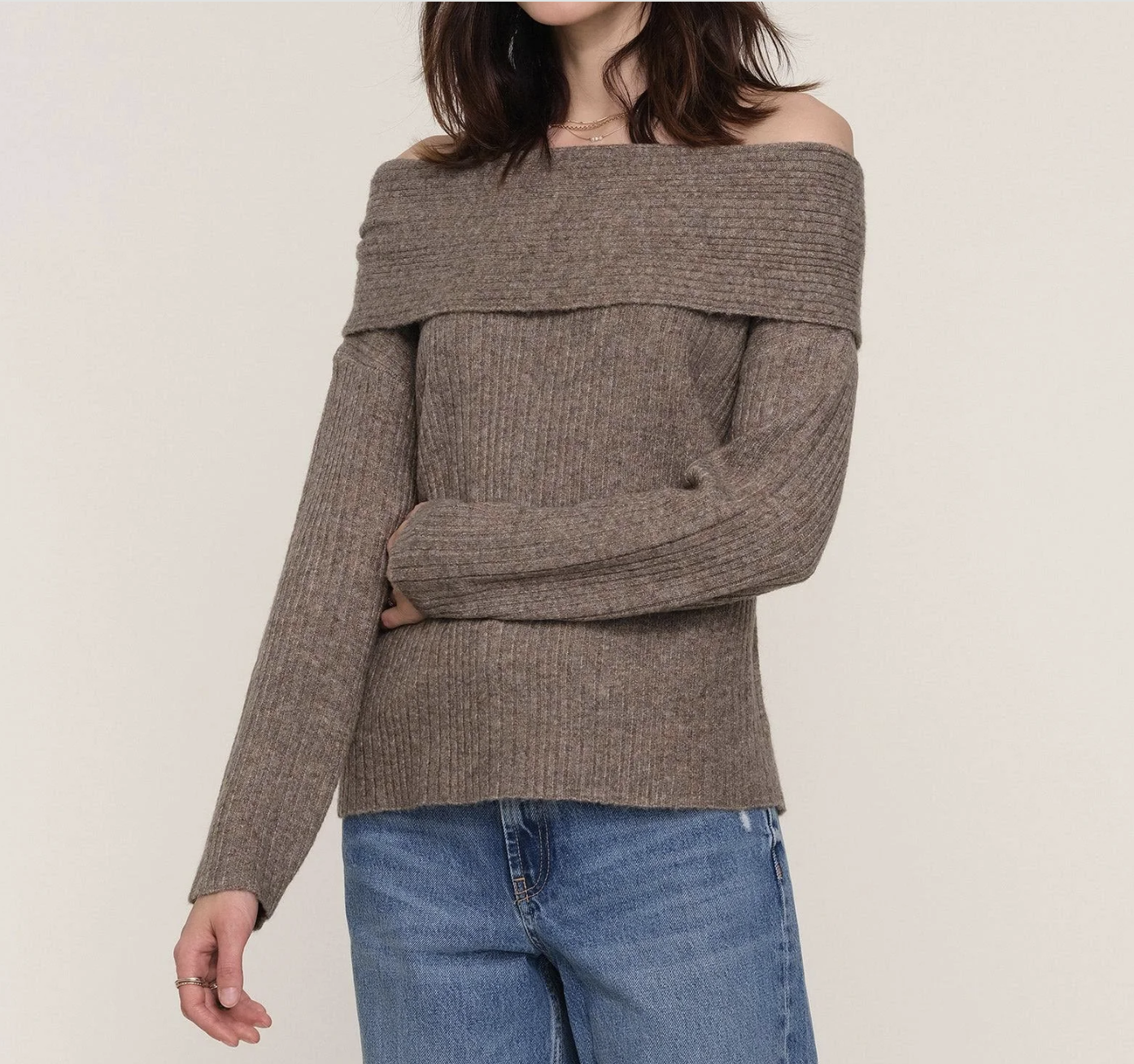 The Heartloom Kendra Sweater offers a luxurious softness and a relaxed silhouette designed for effortless elegance. Featuring a folded, off-the-shoulder neckline, it blends comfort with refined style, making it an ideal choice for daily wear with a sophisticated touch.