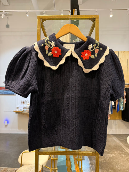 Sadie & Sage Lulu Embroidered Daisy Crew Neck Sweater