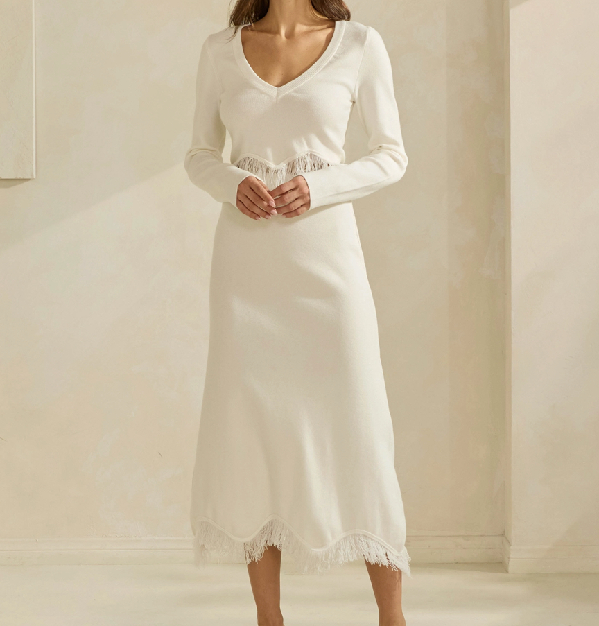 Step into cozy charm with the Wavey Tassel Sweater Skirt in cream. This playful piece pairs soft knit comfort with fun tassel details that swing with every step. Perfect for layering or wearing solo, it adds a touch of whimsy to your outfit while keeping you warm and stylish all season long.